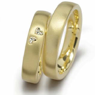 DamenringArtikel-Nr. 100137Gelbgold 585Breite 5,0 mmStein(e): 2-0,10 ct. Herz Si WHerrenringArtikel-Nr. 100138Gelbgold 585Breite 5,0 mmStein(e): -----