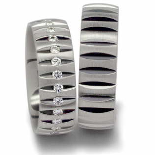 DamenringArtikel-Nr. 10027Platin 950/-Breite 6,5 mmStein(e): 28-0,56 ct. Si TWHerrenringArtikel-Nr. 10028Platin 950/-Breite 6,5 mmStein(e): -----