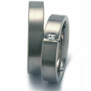 DamenringArtikel-Nr. 10011Platin 950/-Breite 5,0 mmStein(e): 1-0,07 ct. Princess If TWHerrenringArtikel-Nr. 10012Platin 950/-Breite 5,0 mmStein(e): -----