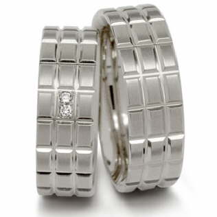DamenringArtikel-Nr. 100269Feingehalt: 585/-Farbe: weissBreite 7,0 mmStein(e): 2-0,03 ct. Si TWHerrenringArtikel-Nr. 100270Feingehalt: 585/-Farbe: weissBreite: 7,0 mmStein(e): -----